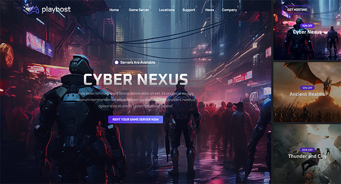 Playhost is an exclusive website template specially made for Game Hosting services with a sleek and modern design. Made using only the finest coding and design practices by an experienced ThemeForest author with over 15 years of experience.